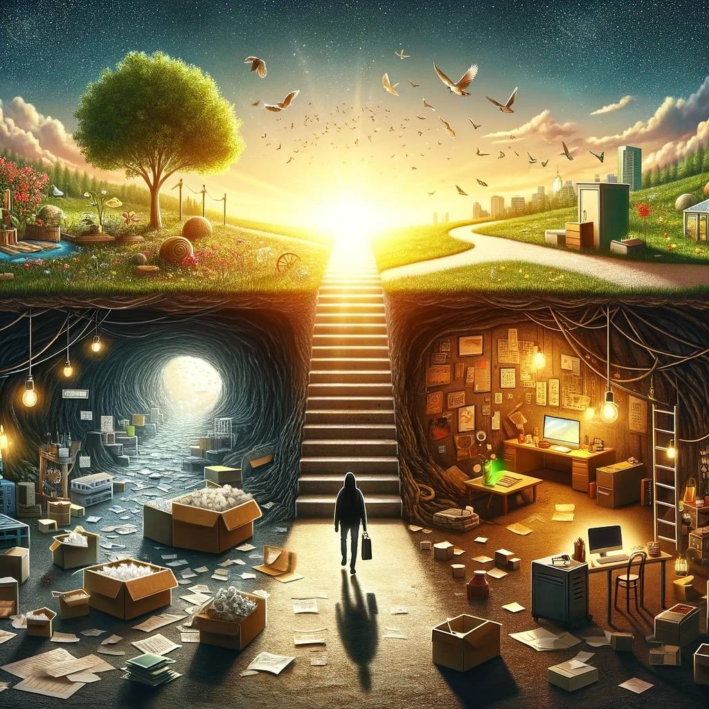 - The Staircase Out: Can you recall a moment, decision, or realization that acted as a staircase leading you out of this basement? It might be a small step or a significant change in perspective. If you haven’t found your staircase yet, speculate on what it could be based on your current understanding of yourself.