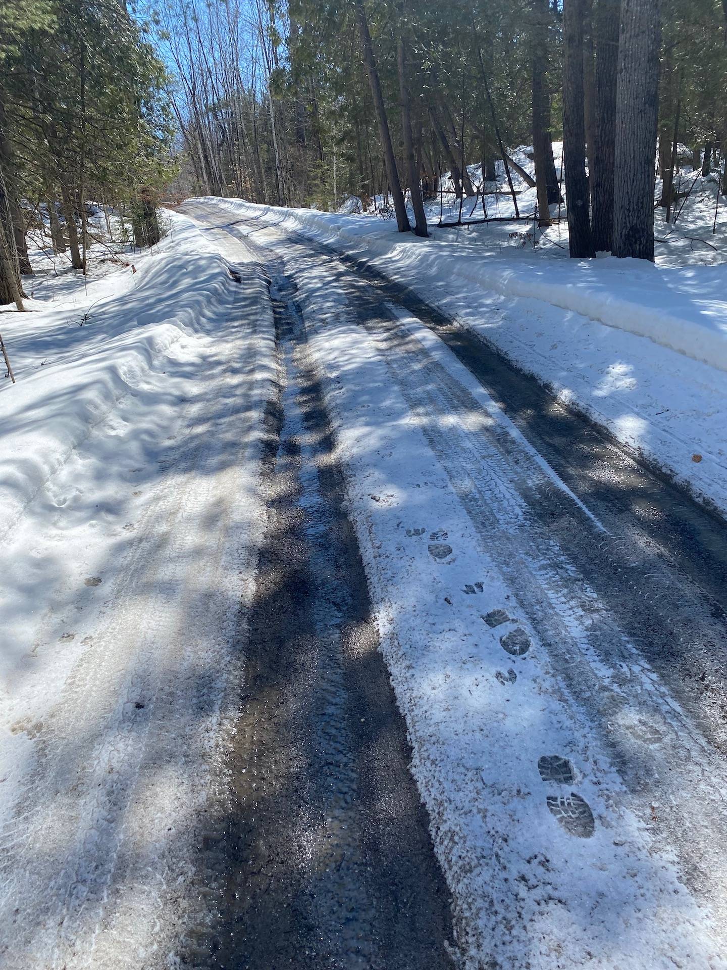 Nestled in the country on the edge of the majestic Ottawa River, our house is on a private dirt road that is narrow and winding. During winter months, the road becomes hard-packed with snow and ice and gets rather slippery. But at least it is solid and provides us with easy-enough access to our home. If you have good winter tires on your vehicle, and good boots on your feet, you can easily navigate it.