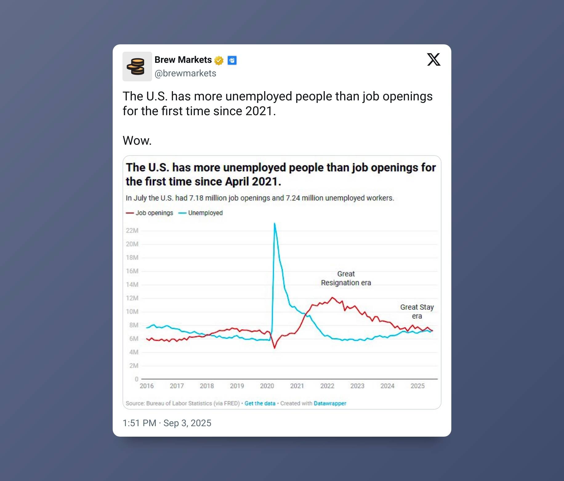 Before, workers were playing a game of musical chairs where there were more chairs than bums. Made it a whole hell of a lot easier to move around. Now, the game has shifted, and for the first time since peak pandemic, there are less chairs than workers.